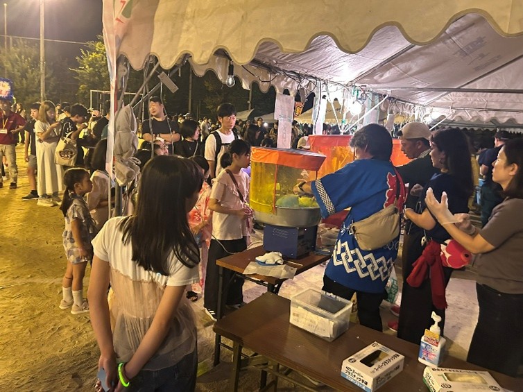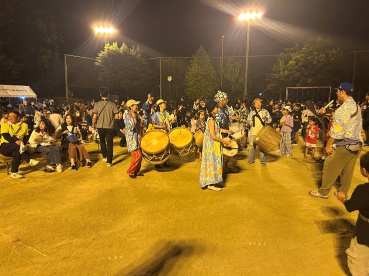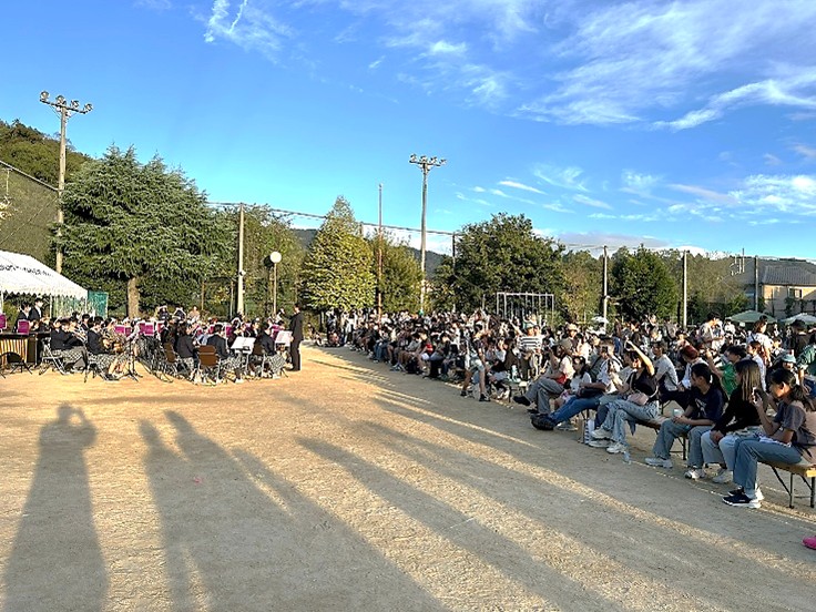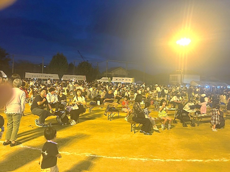 2025年10月11日(土)松ヶ崎フェスティバル~秋祭りが盛大に開催されました。 令和7年10月11日(土)松ヶ崎フェスティバルの1日目、自治連合会主催松ヶ崎の秋祭りが午後3時~8時まで松ヶ崎小学校グラウンドにて盛大に開催されました。朝9時~実行委員会を中心に各種団体が協力して準備、趣向を凝らした各種模擬店も大盛況、下鴨中学校の吹奏楽部、松ヶ崎の「さし踊」他のアトラクションで盛り上がり、天候が心配されましたが、何とか持ち直し、大勢の学区住民が参加し懇親を深め、楽しいひと時なりました。 秋まつり 風景