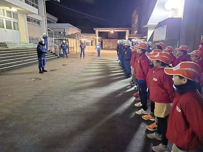 引き続き松ヶ崎消防分団はジュニア消防団の松ヶ崎の児童と共に各地に分かれて年末特別警戒に出発しました。